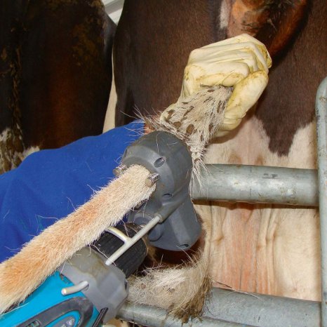 - удаляет всю шерсть с хвоста за считанные секунды(состригание шерсти занимает на более 4-7 секунд и может легко выполняться в процессе доения), даже если она полностью сваляна с экскрементами и грязью;